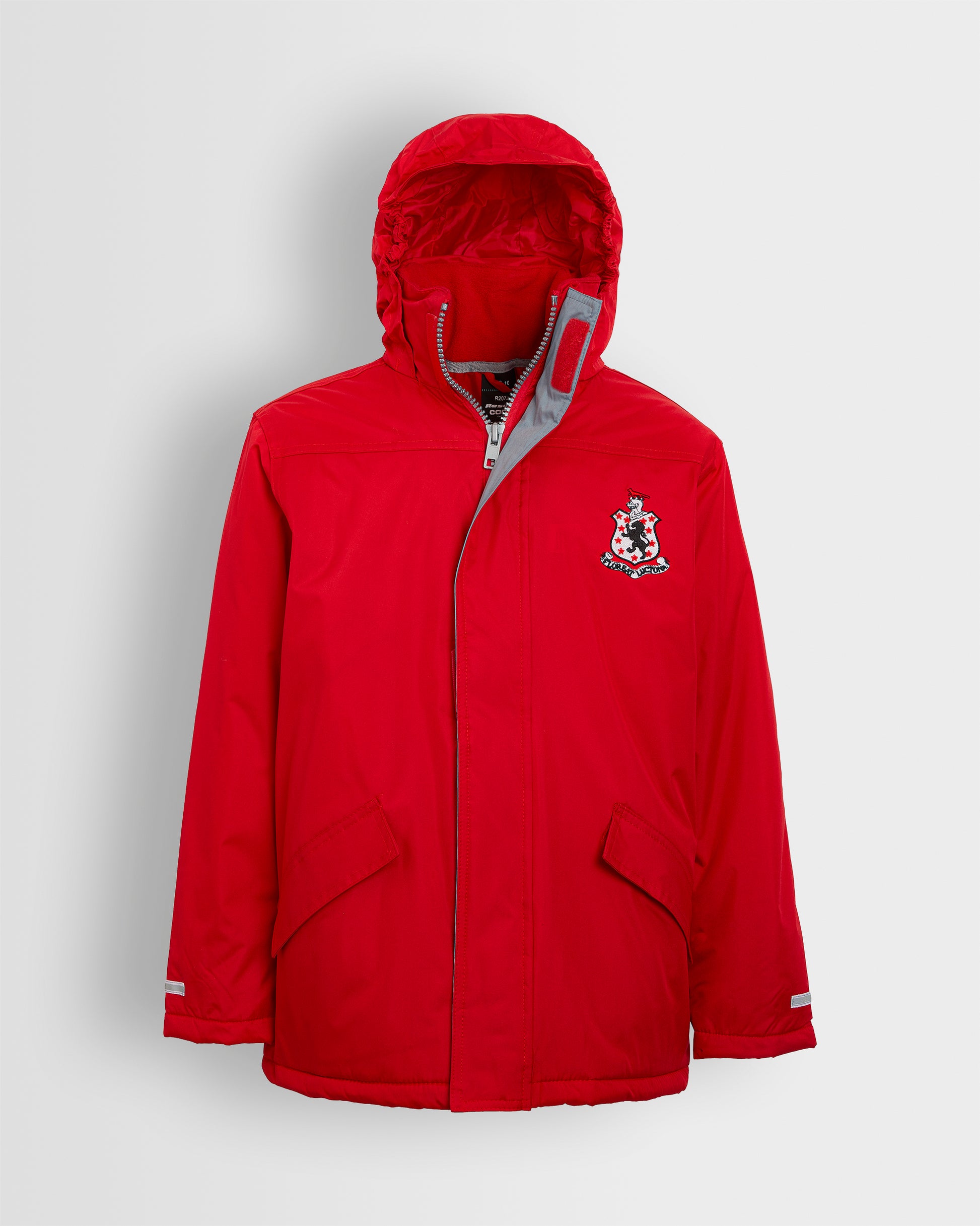 • Full length zip with tear release storm flap.
